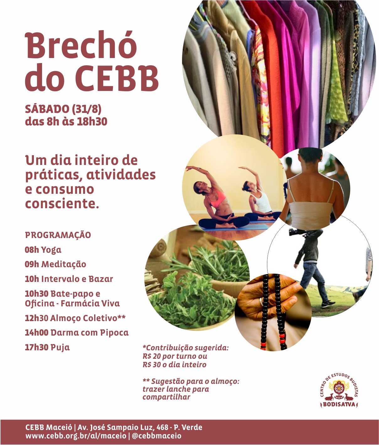 Brechó solidário, aulão de yoga e sessão de meditação: essas são algumas das atividades que farão parte do dia especial de práticas que o Centro de Estudos Budistas Bodisatva (CEBB Maceió) promove neste sábado (31/8), das 8h às 18h.