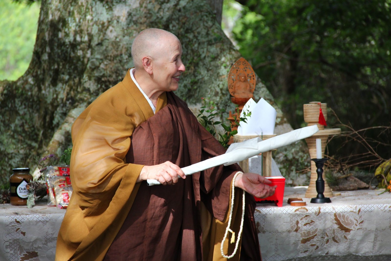 Na cerimônia, Lama Samten deu de presente ao Vila Zen o kiosaku do Abade Superior Ryohan Shingu, que ajudou a estabelecer o Soto Zen no Brasil desde sua chegada, em 1956, até seu falecimento, 30 anos depois.