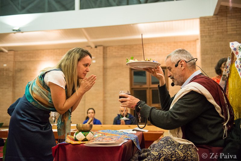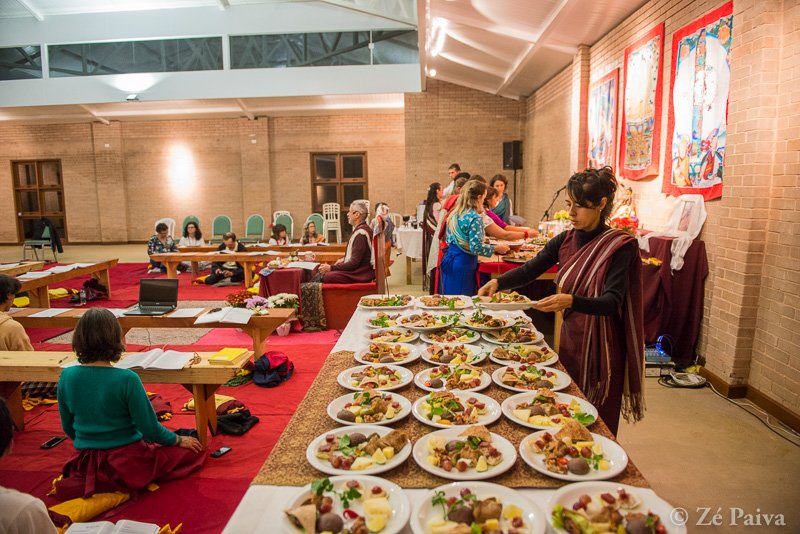 Seguindo o processo de imantação do templo, foram realizados cinco tsogs nas noites do retiro. Um tsog é uma cerimônia e uma prática do budismo vajrayana que envolve observar, através de comida dos diferentes sabores, como a nossa mente se engaja nos processos de “gostar” e “não gostar”. Assim, o tsog atende à dupla função de ser uma cerimônia festiva e uma prática avançada de treinamento da mente.