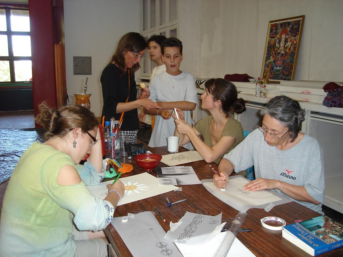 Tiffani leciona hoje em todo Brasil e guia grupos de estudo de Arte para Asia anualmente. Você pode saber mais no seu site. Veja sua agenda de workshops em diferentes localidades e também curso Online de pintura tibetana de Thangka. O livro publicado, entitulado “Vida e Thangka” está disponível na Amazon para kindle. Veja mais fotos do making of das pinturas do templo no facebook de Tiffani.