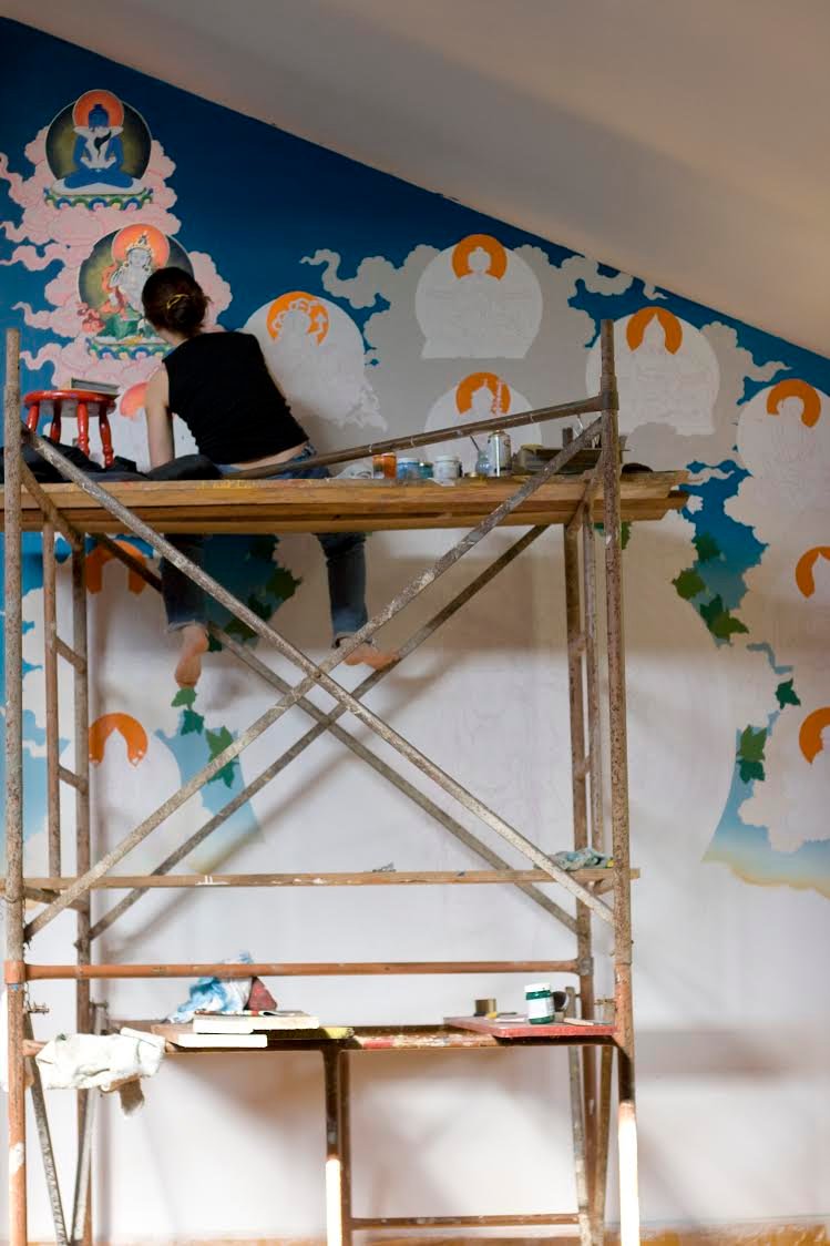 Tiffani iniciou seus estudos de thangka no mosteiro de Gandam, na Mongolia no ano 2000. Depois, na Alemanha completou seus estudos de design gráfico e finalmente foi aceita no Instituto Norbulingka, fundado por S.S. o Dalai Lama em Dharamsala onde estudou a arte tibetana da iconografia de thangka, de 2003 a 2006. As pinturas do templo finalizaram no fim de 2012. O vídeo abaixo mostra um pouco mais do decurso dos trabalhos de pintura dos paineis do Templo do Cebb Caminho do Meio em Viamão: