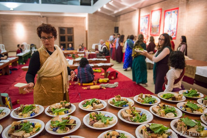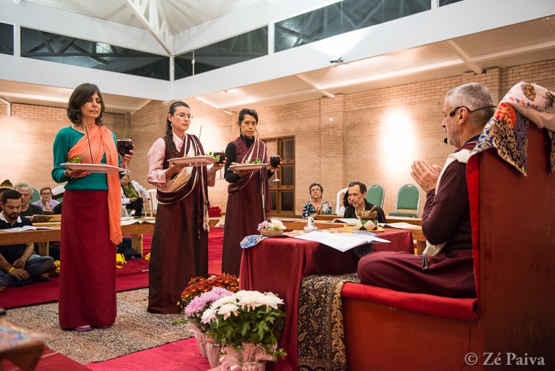 Seguindo o processo de imantação do templo, foram realizados cinco tsogs nas noites do retiro. Um tsog é uma cerimônia e uma prática do budismo vajrayana que envolve observar, através de comida dos diferentes sabores, como a nossa mente se engaja nos processos de “gostar” e “não gostar”. Assim, o tsog atende à dupla função de ser uma cerimônia festiva e uma prática avançada de treinamento da mente.